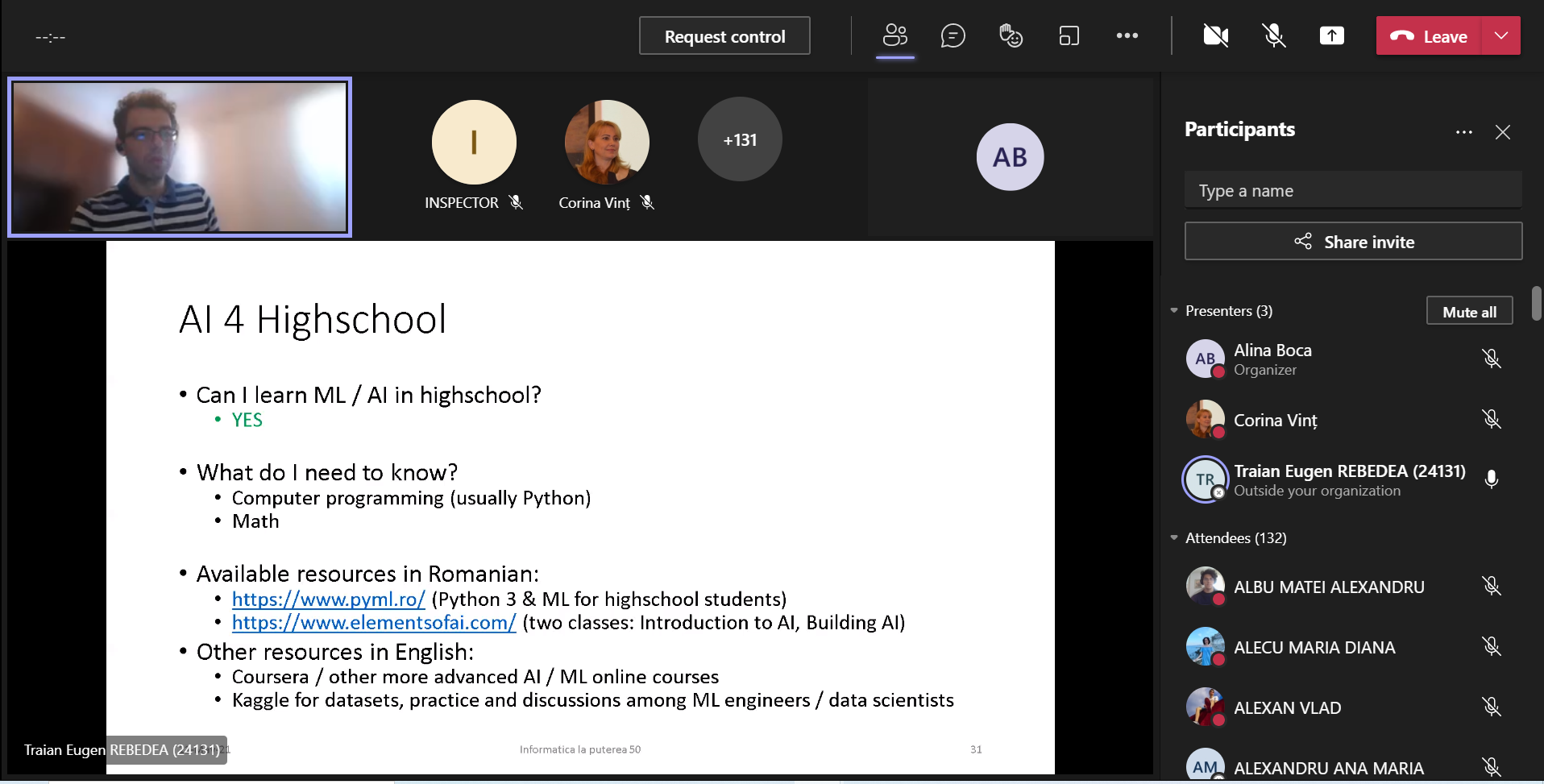 - Colegiului Naţional de Informatică „Tudor Vianu” din Bucureşti;
