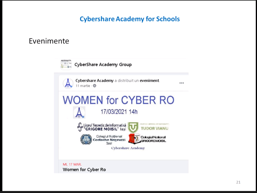 - Concurs de proiecte IT, reunind elevi din fiecare școală